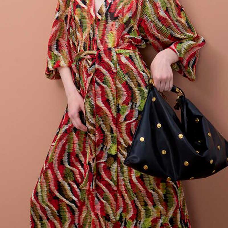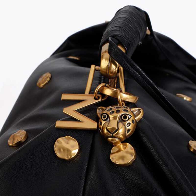 Cierre con cremallera con asa de mano dorada y posibilidad de bandolera.