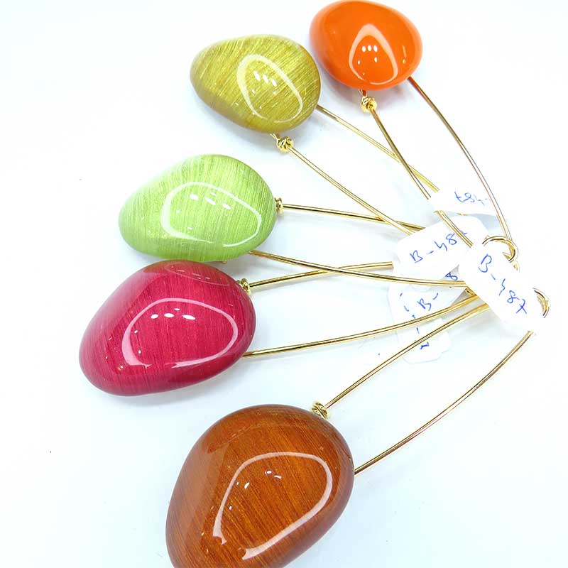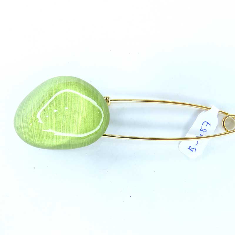Broche-imperdible con pieza de resina con volumen ovalada.